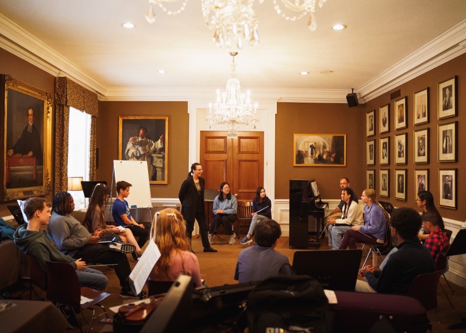 This experience complements the full orchestra setting by preparing students for the kind of musical thinking expected in college and beyond. Core components include chamber music rehearsal and performance, music theory and history integration, and a spirit of service through community-based performances.